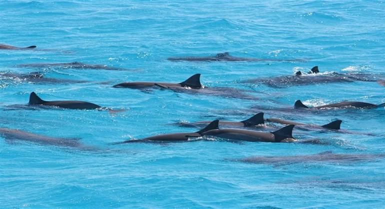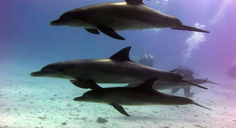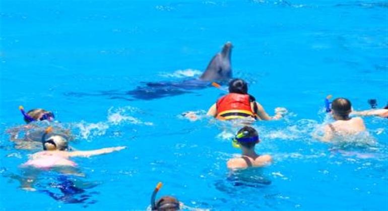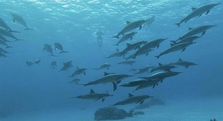 • Swim with dolphins in the open sea