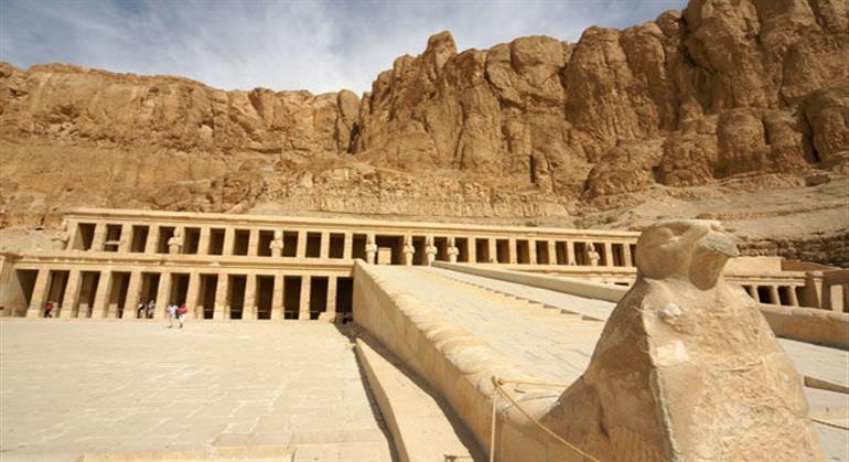 Learn about the female pharaoh Queen Hatshepsut at her funerary temple