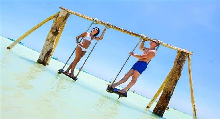 The island nature reserve has with her white, gently sloping beach an ideal place to soak up the sun and relax. The clear and shallow water is perfect for swimming and bathing. The beautiful coral reefs that are very close, are a real underwater paradise for snorkeling friend.
